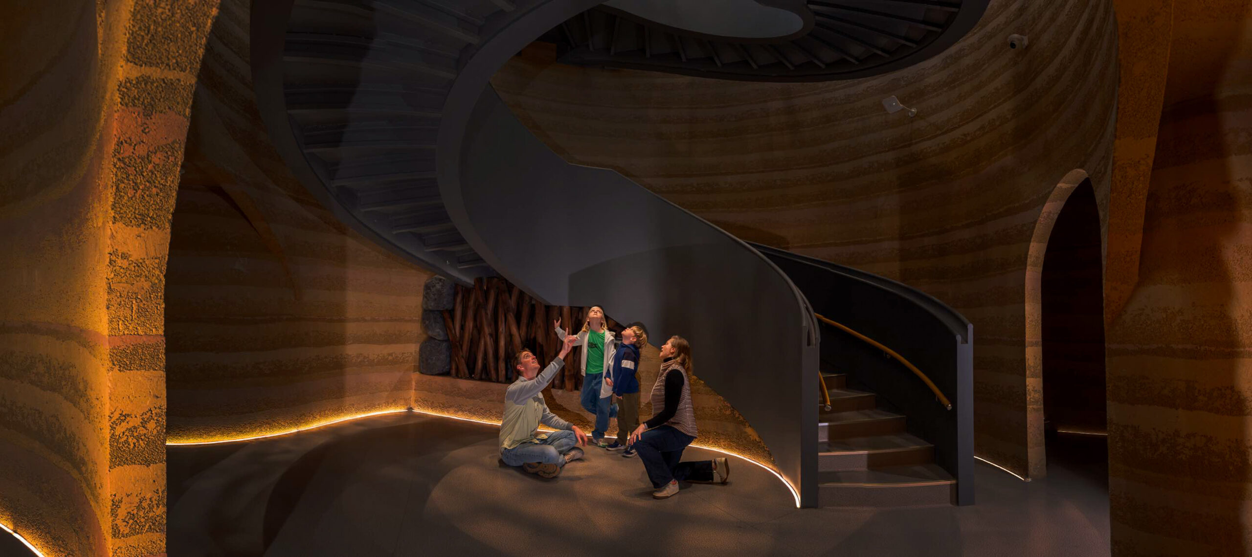 Creating a sense of journey, The Explorium! integrates opportunities to investigate with process and materials throughout the innovative exhibits. Visitors joyfully engage in unscripted, purposeful play as their means of learning about the world around them.